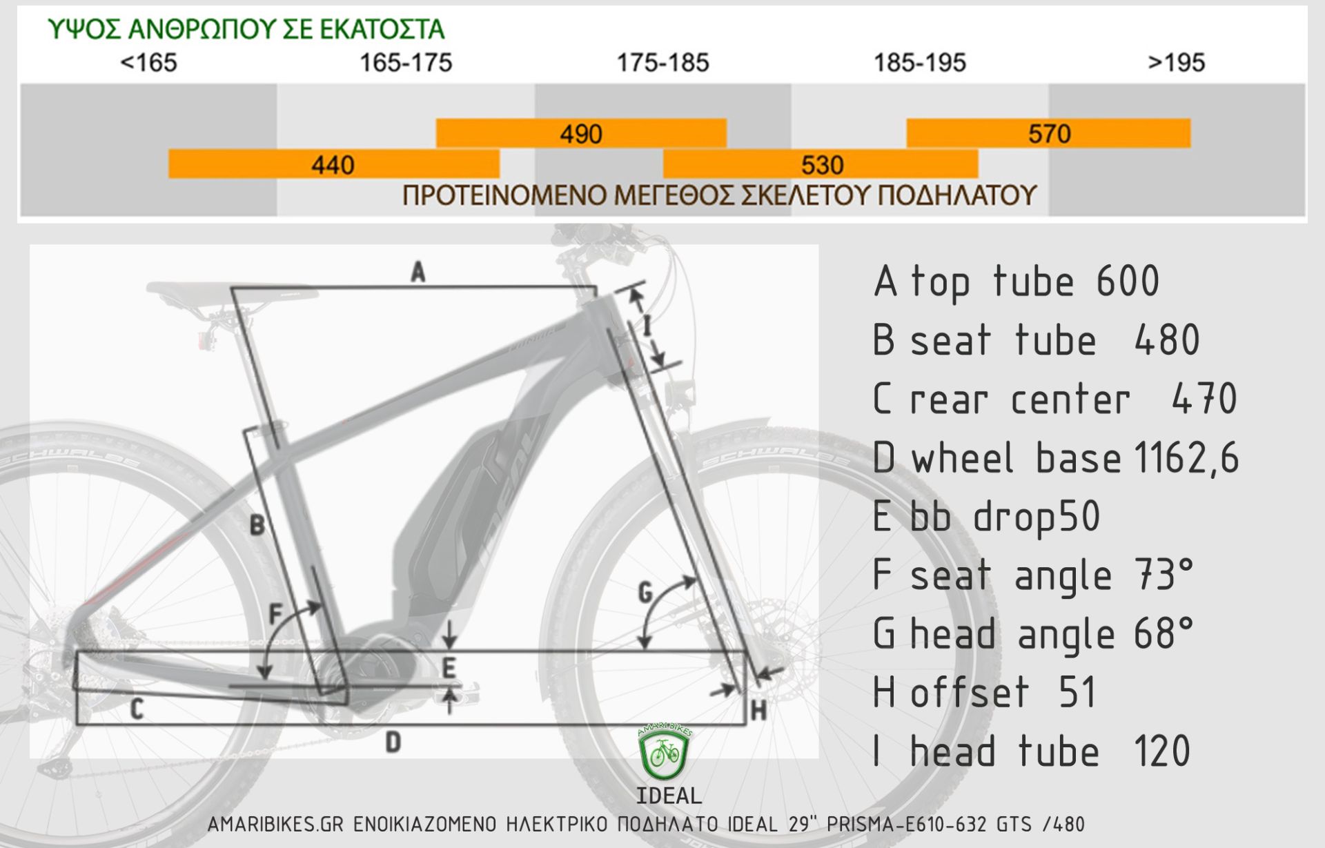 The diagram correlates a person’s height with appropriate frame sizes. In our store, sizes small, medium and large are available. (We indicate the size on each bike)